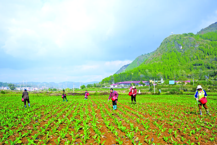 時下,正是雪里蕻管護的時節,在岑鞏縣水尾鎮馬家寨村雪里蕻種植基地里,來自周邊的村民提著裝滿肥料的水桶,將有機肥均勻地撒在土壤表面,為幼苗生長筑牢根基。